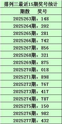 排列三第2025277期开出直选号码432,历史上该号码直选出现10次,前9次出现之后,下期开出号码为:789、141、610、079、041、009、257、162、534,其前后5期分别开出奖号:(统计见下表)