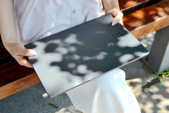 SEAVIV AideaBook R14的机身裸机重量只有978g(官方标称 980g,误差在合理范围内),官方标配了一个153g 的很小的氮化镓适配器,整套重量仅1.13kg,这个重量比苹果 13 寸 MacBook Air 的1.2kg还要轻,女生单手都可以托着使用笔记本。机身厚度为15.95mm,可以很轻松的放在13寸的电脑包里,背着几乎没有一点负重感,很适合通勤、出差使用。