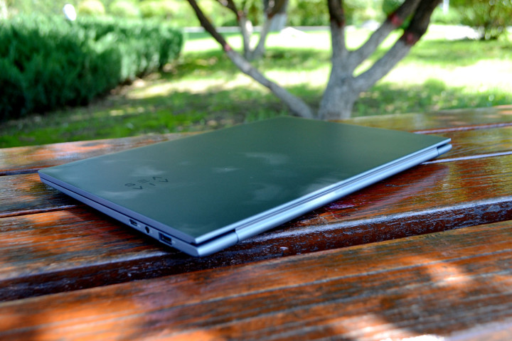 因为当时选笔记本也看了好多,这种特别轻不到1kg的本子,大多数都是一线大厂的,这类本子都特别贵,都得小一万块钱,就这台的价格我能接受,顶配也才5000多,因为是自费购买的,所以把我这半个月当主力电脑的使用体验都和大家客观讲讲,尤其是大家比较关心的这种极致轻薄的本子的性能和散热各方面的表现怎么样?先说下外观和做工,整体外观,确实让我有点意外,和普通笔记本摸上去的质感不一样,拿到手上是真轻薄,起初我以为是不是机身用的是塑料的材质,仔细摸,确认这是金属的机身,用的不是传统笔记本的那种铝合金,而是更轻薄的镁铝合金,陨石灰的配色在不同光线下会呈现出淡淡的金属光泽,挺好看的,还不留指纹。