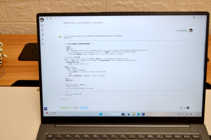基于至高38 TOPS混合算力的独立NPU芯片,SEAVIV AideaBook R14内置了专属 AI 助手。这样在开会议的时候,通过SEAVIV AI助手,可以更好的做好实时会议纪要。我们用腾讯会议模拟 1 小时商务会议,AI 助手能实时转写语音内容,支持中英文双语识别,准确率高达 98%, 甚至能准确区分 “需求” 和 “须求” 这类同音不同字的表述。会后生成的可编辑文档,自动分点标注了 “讨论结论”、“待办事项”,省去了我手动整理的时间。