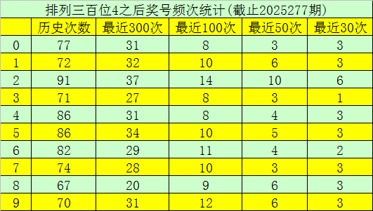 第一位杀号:上期第一位奖号为4,第一位奖号4历史上出现777次,前100次该位开出奖号4之后,下期号码0-9出现次数从高到底分别为:号码2→14次,9→12次,6→11次,1、5、7→10次,8→9次,0、3、4→8次。